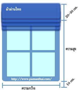 - สำหรับม่านพับจะบวกความสูงเพิ่มอีกประมาณ 10 - 30 ซม. และด้านล่างวงกบลงมาประมาณ 5 - 10 ซม. หรือตามต้องการ