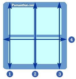 - โดยปกติจะใช้ขอบวงกบด้านนอกเป็นหลักหรือเผื่อออกไปด้านละ 5 ซม. หรือตามความต้องการของลูกค้า